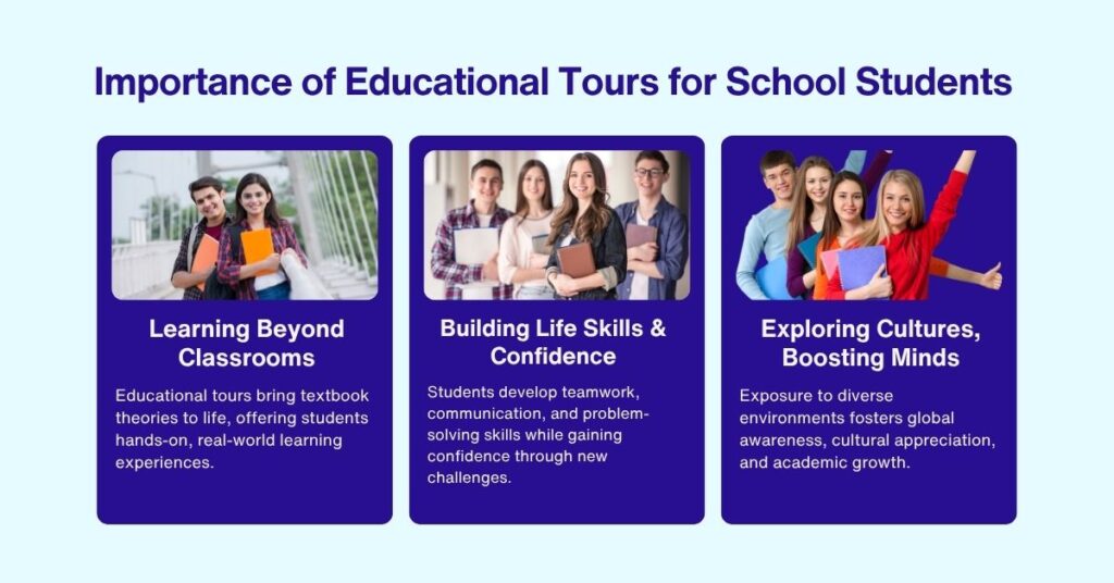 There are lots of benefits! Educational tours make learning more interactive and fun, help students understand their subjects better, encourage teamwork, boost creativity, and build confidence. Plus, students get to experience different cultures and develop skills that help them in life beyond school.