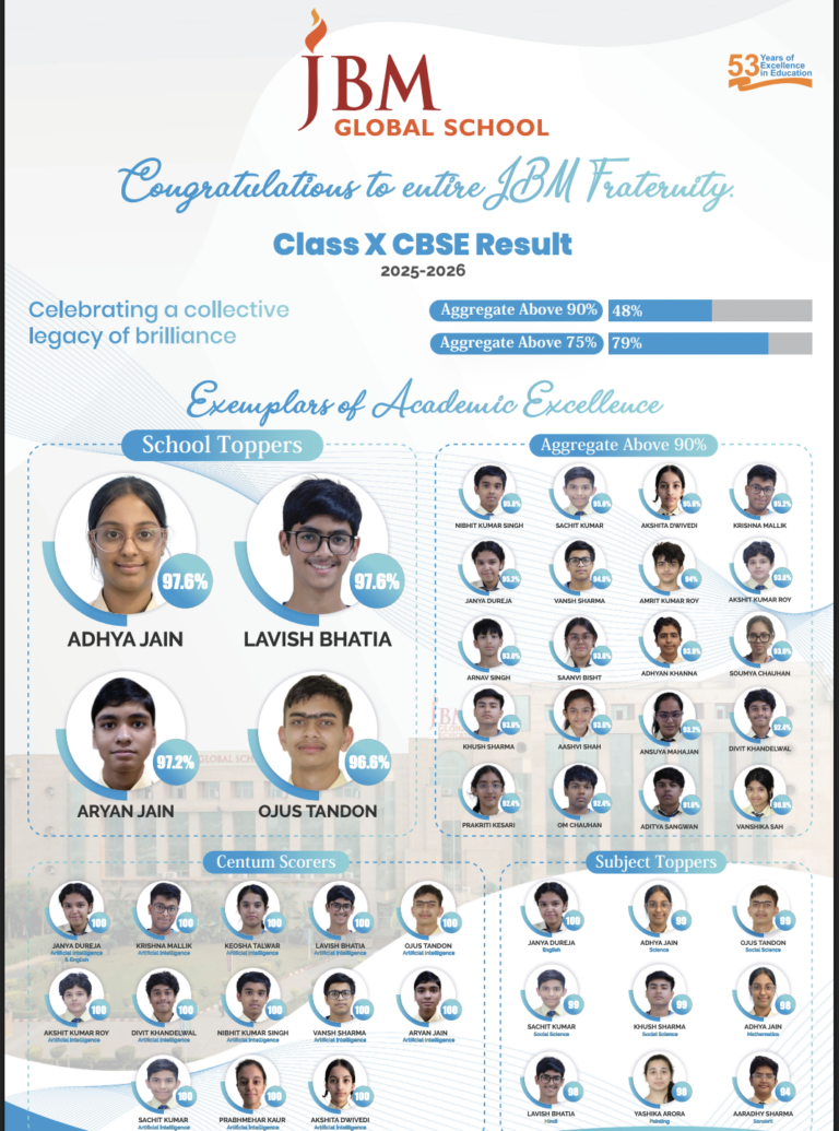 JBM Global is one of the best CBSE schools in Noida that nurtures the core trait of punctuality in students & empowers them to lead disciplined, successful, and respectful lives. We know that cultivating punctuality is a lifelong skill which helps students flourish and thrive in a world that values discipline, respect, and excellence. Thus, helps students have a bright future with punctuality at the core.